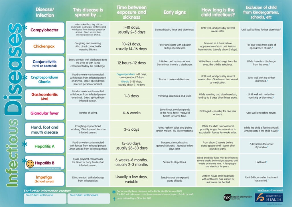 For other specific illnesses, exclusion periods vary. Refer to the below sheet or ask your Educator for a copy of our sickness policy.